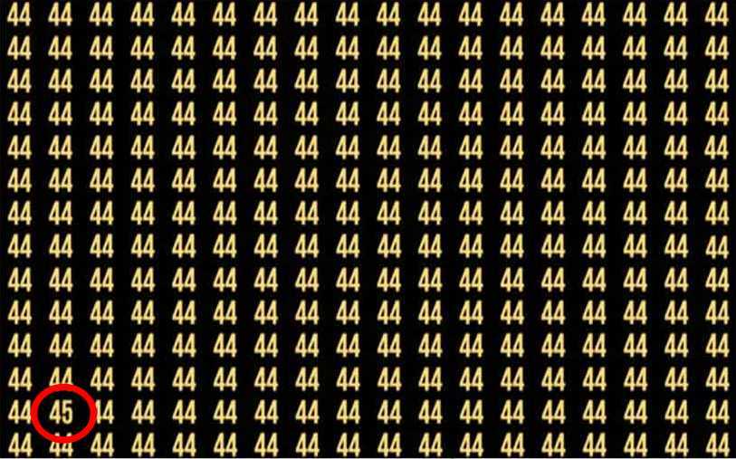 Bei so vielen Zahlen kann die 44 in den Augen kräuseln, so dass es schwierig sein wird, eine Zahl zu finden, die sich von allen anderen unterscheidet.